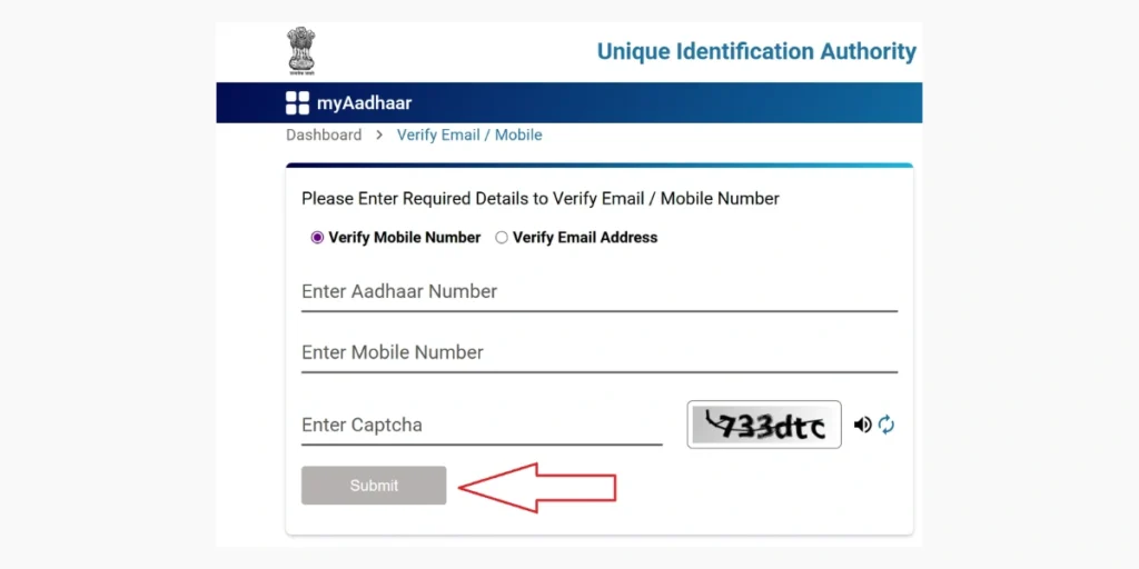 - Enter Your Aadhaar Number: Provide your Aadhaar Number and complete the captcha for verification.
